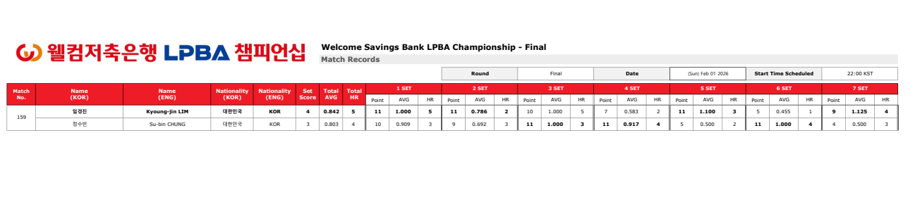 새벽까지  펼쳐진 프로당구 2025-2026시즌 마지막 투어, 웰컴저축은행 LPBA  결승은 7전 4선승제 세트제로 진행됐으며, 세트당 11점을 먼저 따내면 승리하는 방식이었습니다.