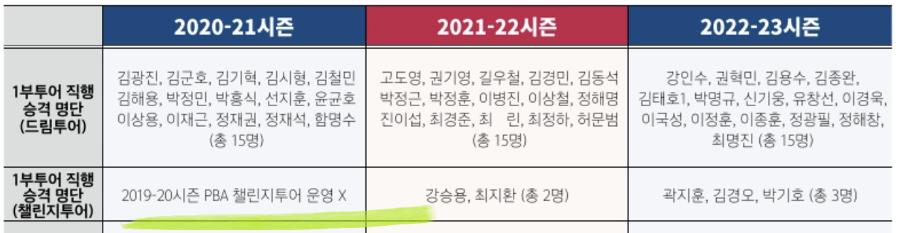 2020~2023 시즌 PBA 1부 투어 직행 승격자