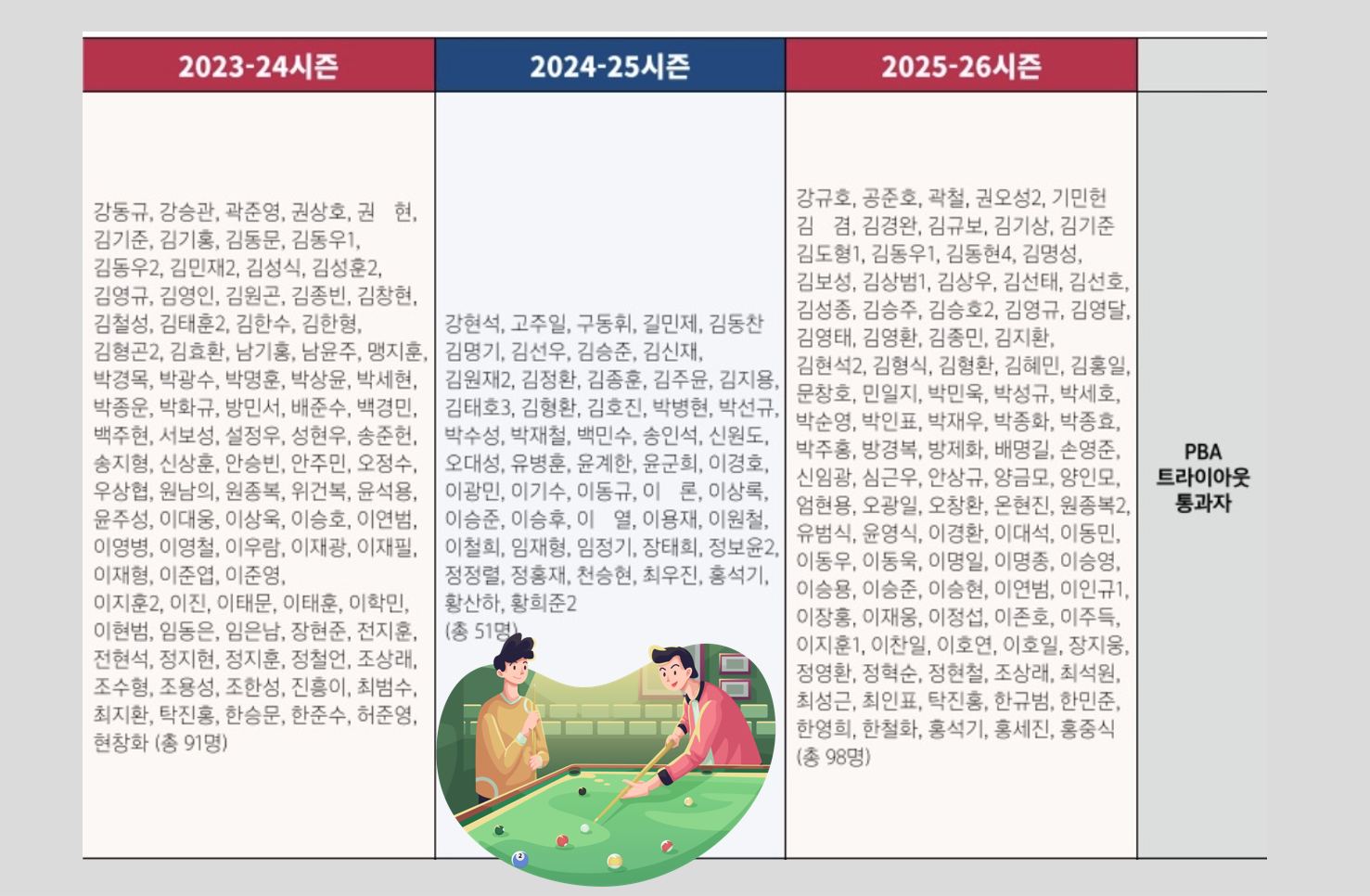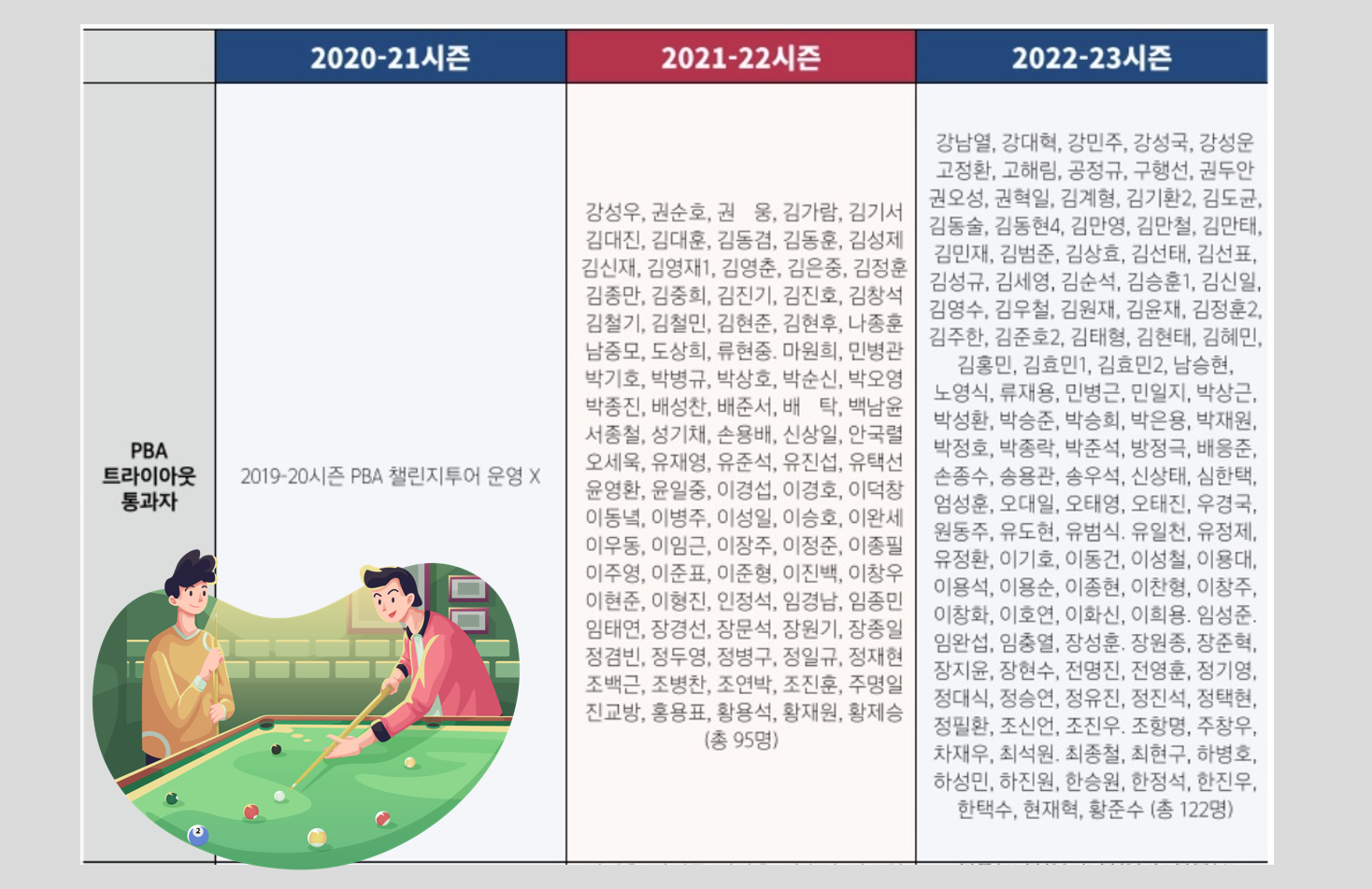 PBA 트라이아웃 통과자 선수 명단 정리 (프로당구 2020~2026 시즌)