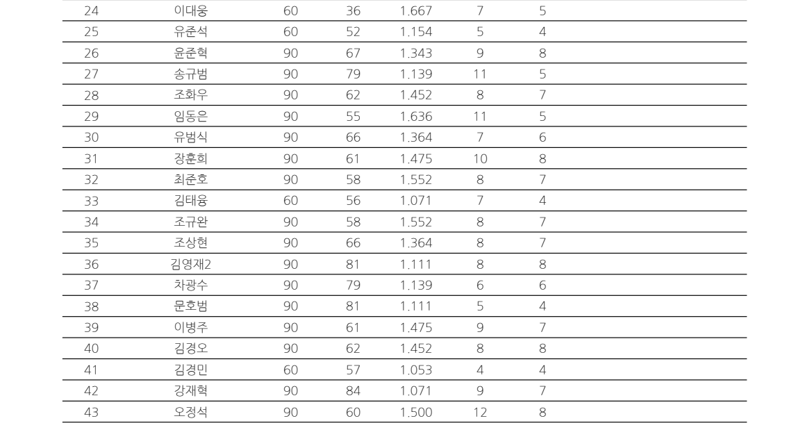 조신연은 평균 1.667로 깔끔한 경기 내용을 남겼고, 임동은 역시 평균 1.636을 기록하며 꾸준한 득점력을 보여줬습니다. 이처럼 64강 진출자 명단을 보면 폭발력보다는 완성도 높은 플레이가 두드러진 선수들이 많습니다.