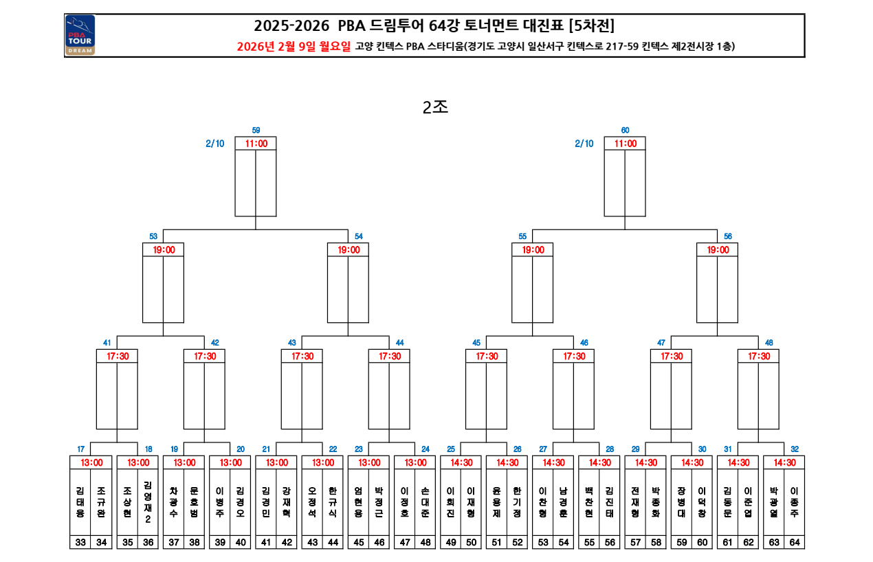 | PBA 드림투어 5차전 8강 대진표 한눈에 정리 – 1부 복귀를 노리는 선수들 (0) | 2026.02.10 |