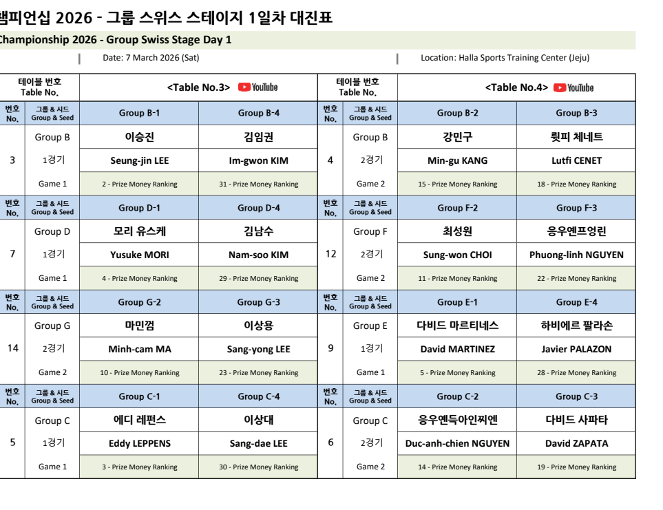| LPBA 월드챔피언십 2026 3월 6일 1일차 대진표·경기시간 총정리 (0) | 2026.03.03 |