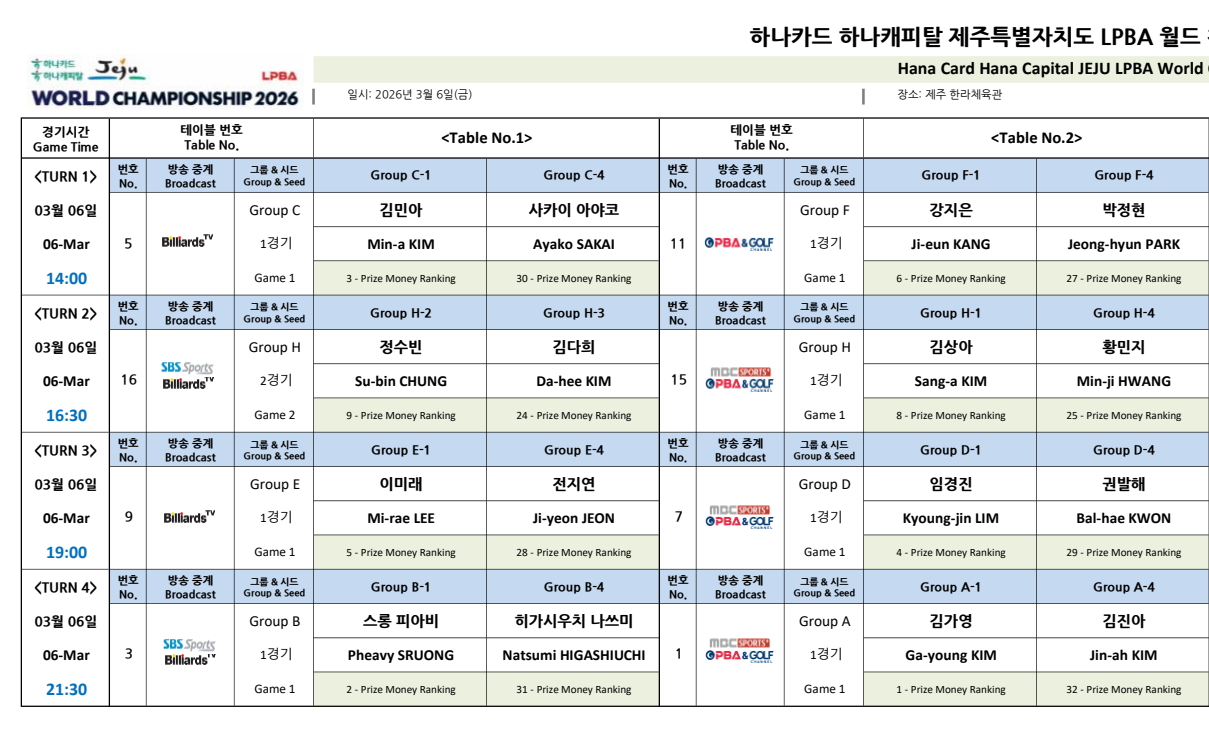 LPBA 월드챔피언십 2026 1일차 대진표(3월 6일)