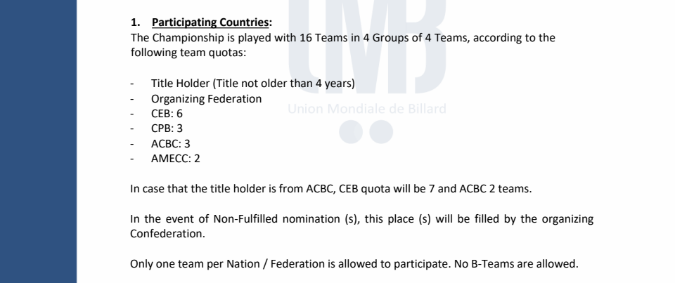 1) 세계 팀3쿠션 출전국 선정 기준은 어떻게 결정되나