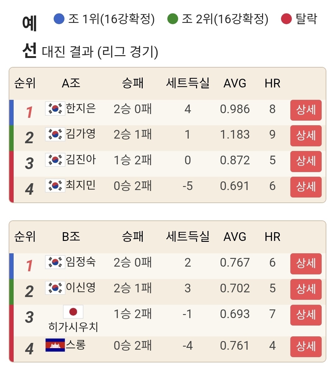 같은 조별리그라도 어디까지는 여유 있게 올라가고, 누군가는 마지막까지 흔들리며 통과합니다. 그래서 최종 순위표를 보면 단순한 승패보다 선수들의 현재 경기 흐름이 더 또렷하게 보이곤 합니다.