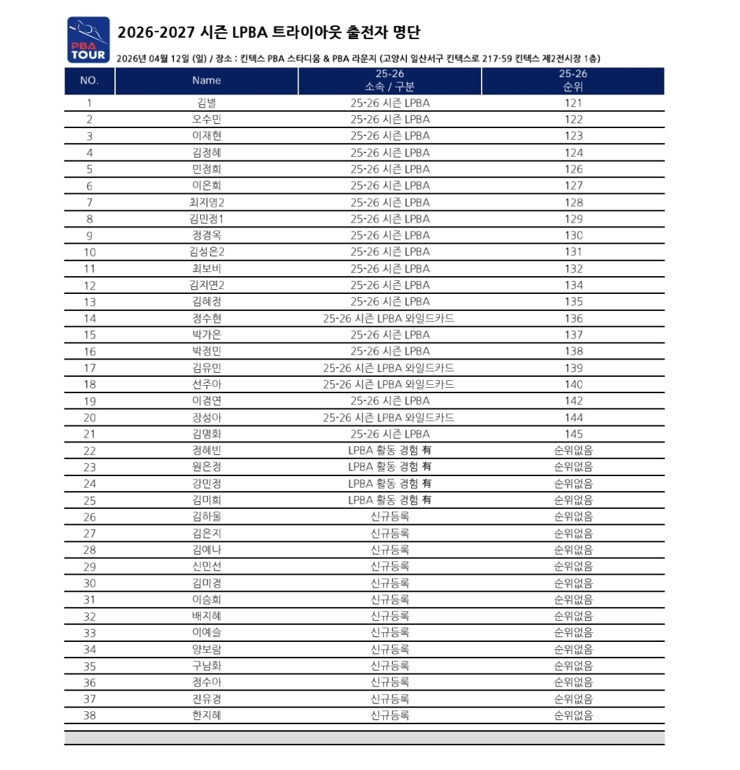 2026 LPBA 트라이아웃 출전자 명단과 여자 프로당구 진입 경쟁 흐름