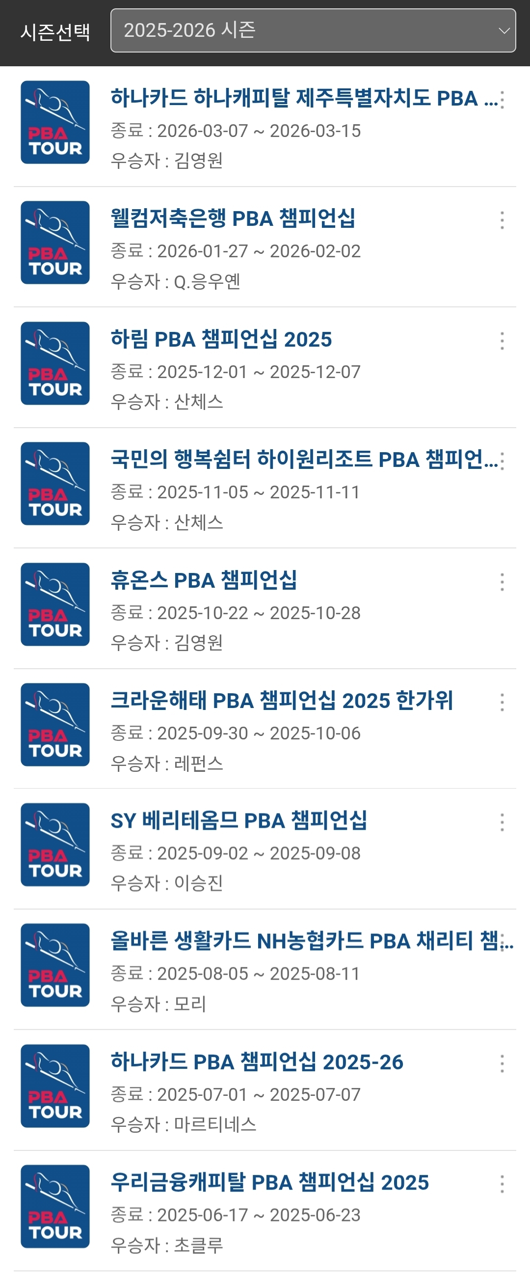 이번 정리를 기준으로 다음에는 월드챔피언십 우승자만 따로 묶어 보거나, 다관왕 시즌만 따로 정리해보셔도 좋습니다. 그렇게 보면 PBA 프로당구의 판도 변화와 강자 계보가 더 또렷하게 보입니다.