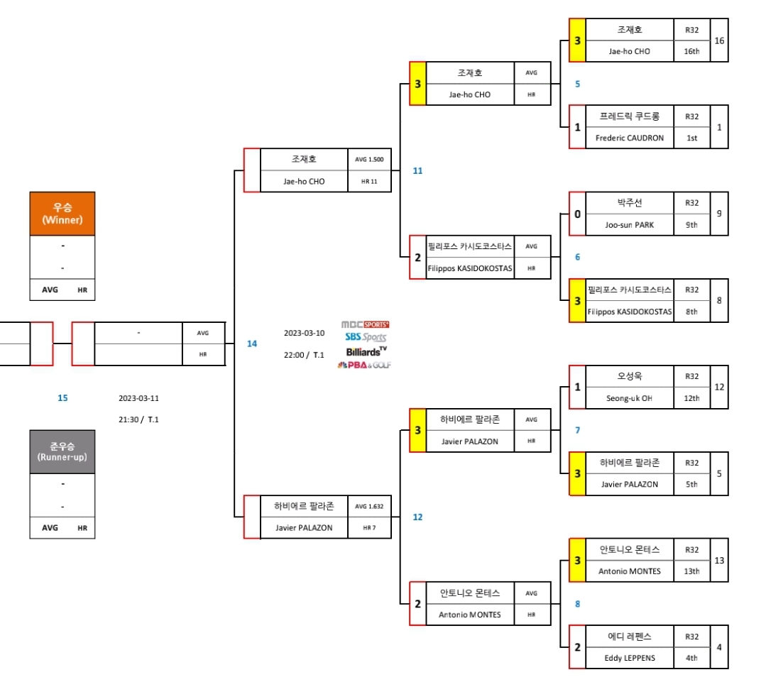 SK렌터카 PBA 월드챔피언십 2023 4강 준결승 대진표 (2) - 조재호VS 하비에르 팔라존