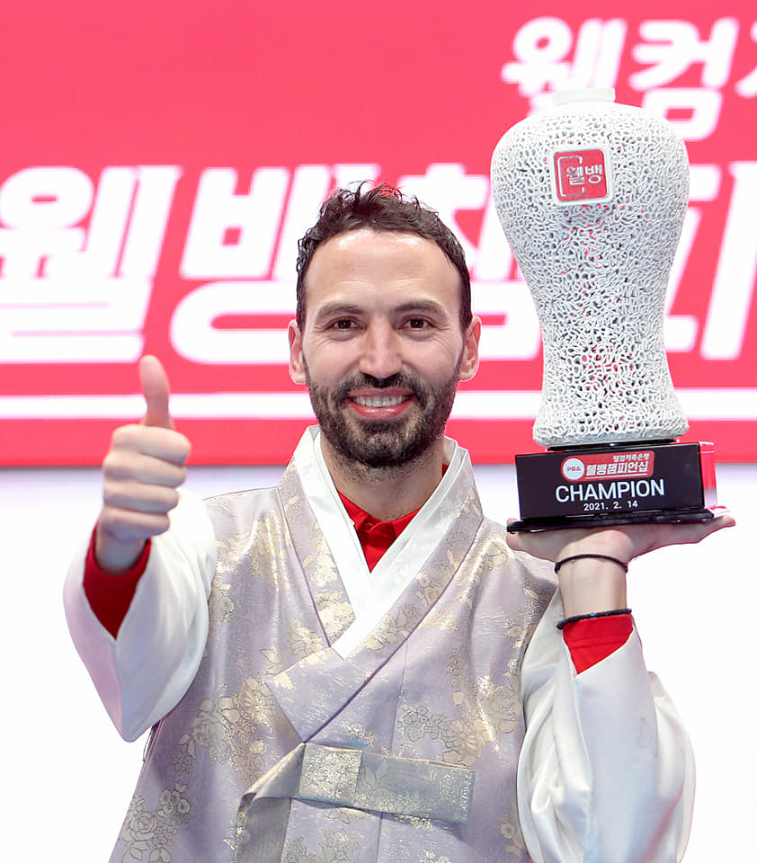 2003년부터 2년 연속 세계선수권 준우승, 2009년에는 우승으로 정상에 올랐습니다. 하지만 2013년에 오른손에 급작스러운 신경계 손상으로 수전증이 시작됐습니다. 보통사람이라면 포기했을 당구! 하지만 그는 큰 위기를 맞았지만 2017년부터 큐를 왼손으로 바꿔 잡고 피나는 훈련에 돌입하여 오늘에 이르렀습니다.