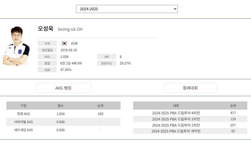 | PBA시즌랭킹 | 공동82위 | 공동 237위 | ||