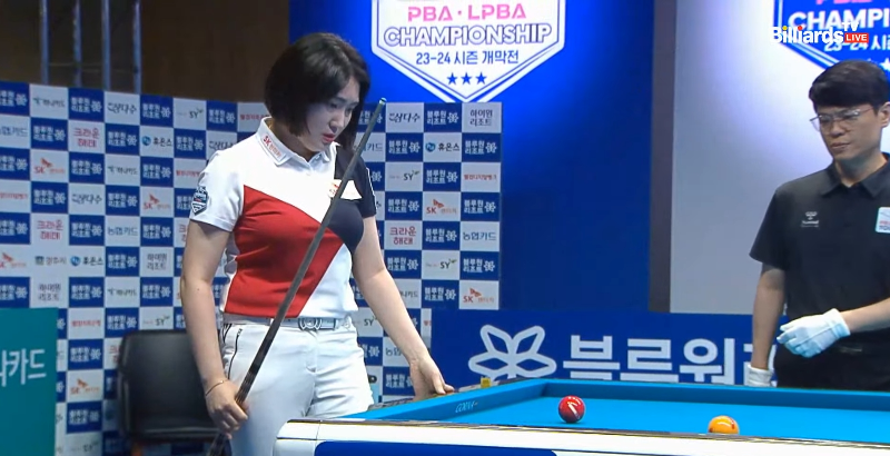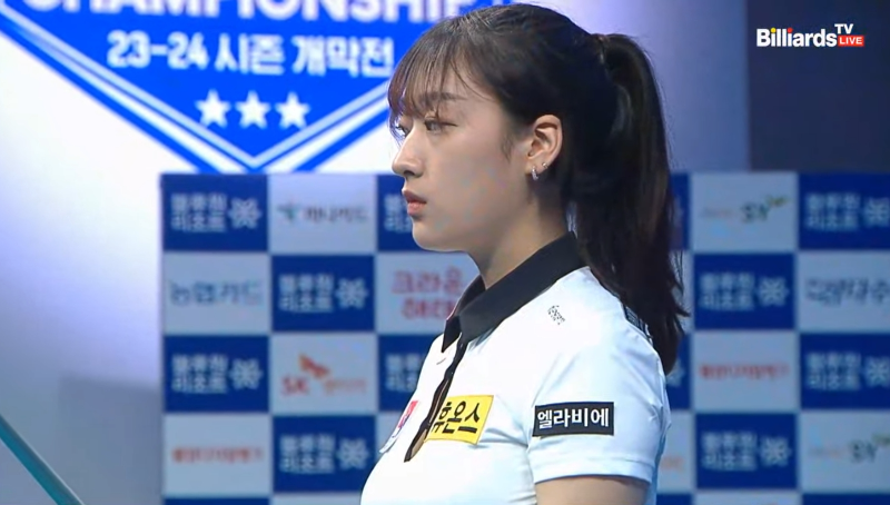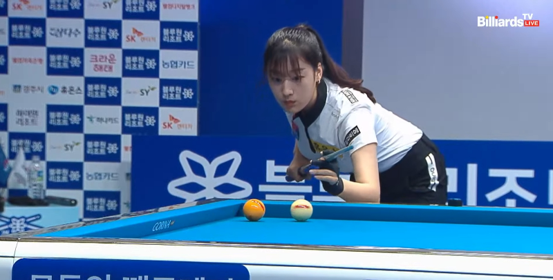 강지은 당구선수에게 쉬운 배치가 오지 않습니다.