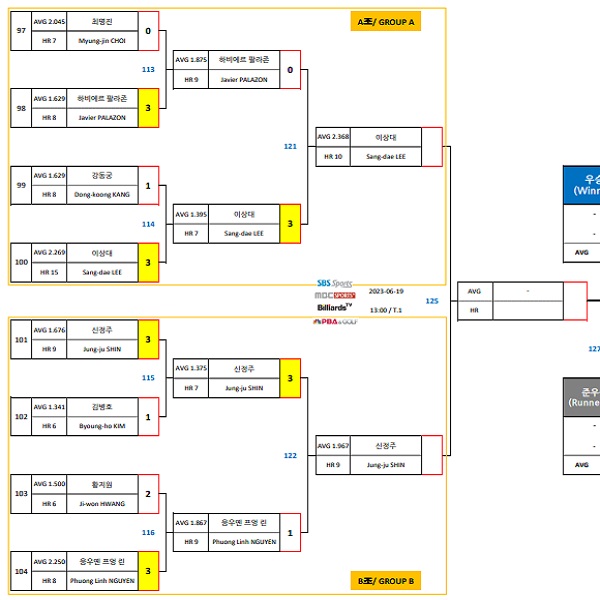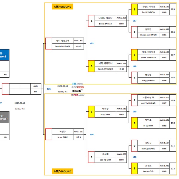 | 세미 세이기너 이상대 - 경주 블루원리조트PBA 챔피언십 결승 대진표 (0) | 2023.06.19 |