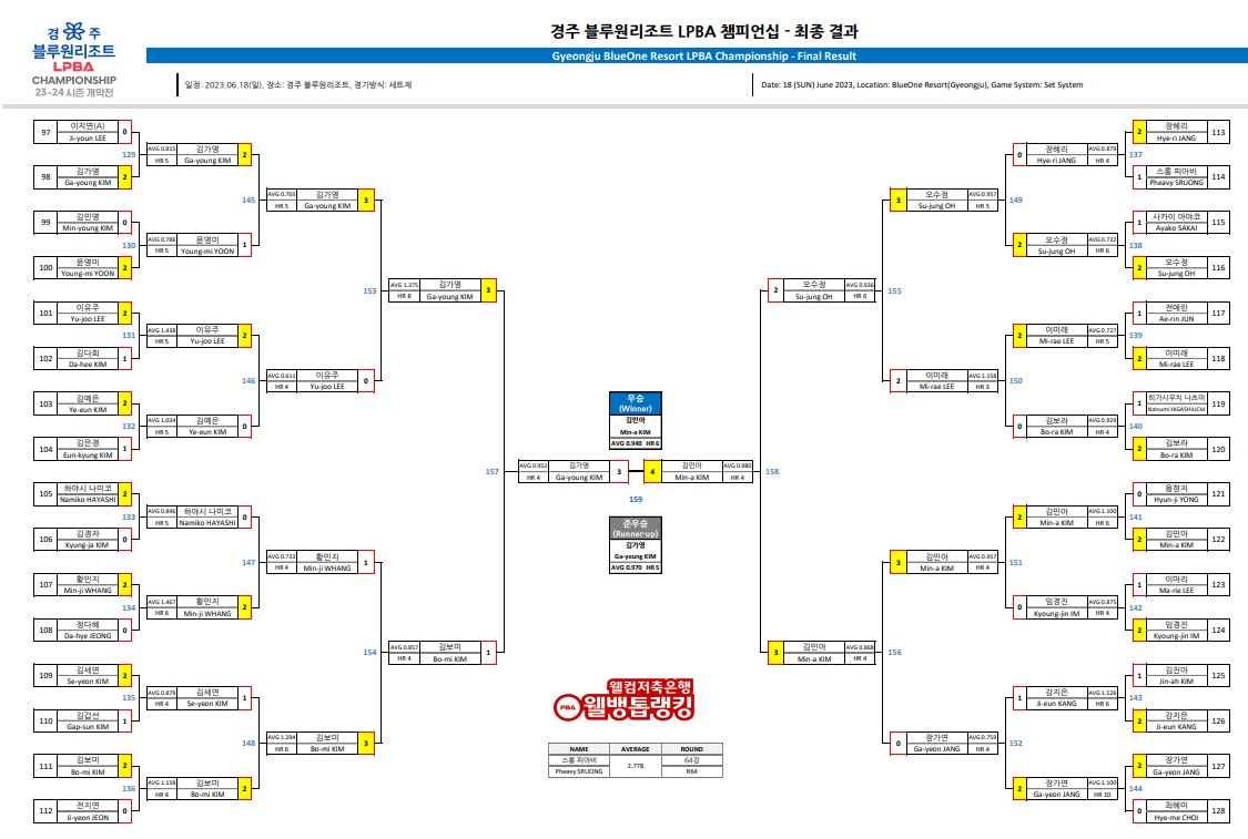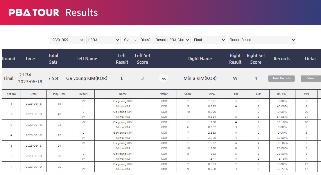 6월 18일 저녁 늦게까지 펼쳐진 여자프로당구 개막전, 경주 블루원리조트 LPBA 챔피언십 23-24의 우승자는 김민아 선수로 결정되었습니다.