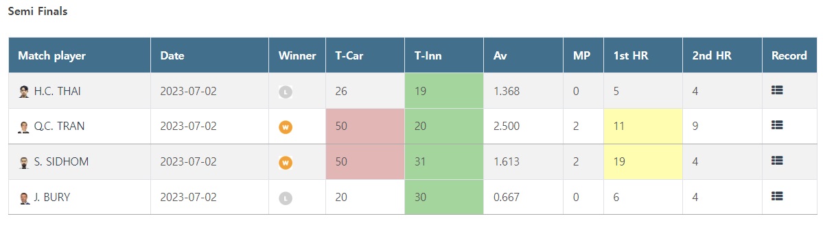 2023년 포르투 3쿠션 월드컵 대회 2023년 포르투 3쿠션 월드컵 대회는 지난 6월 26일부터 6월 29일까지 최종 예선을 먼저 거쳐, 7월 1일에는 16강전, 8강전이 펼쳤습니다. 오늘 7월 2일은 4강전과 우승자