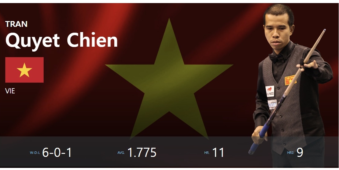 트란퀴엣치엔은 현재 UMB 세계 당구랭킹 10위에 올라있는 베트남 당구 선수입니나.