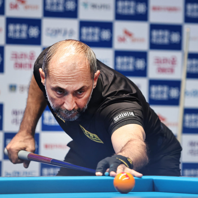 프로 데뷔 첫 투어에서 우승컵을 들어올린 ‘미스터 매직’ 세미 세이기너(튀르키예∙휴온스)가 임태수에 패배, PBA 첫 패배를 기록했다. 6일 경기도 안산 상록수체육관에서 열린 프로당구 2023-24시즌 2차투어 ‘실크로드&안산 PBA-LPBA 챔피언십’ PBA 64강서 세이기너는 임태수를 상대로 세트스코어 1:3(15:5, 6:15, 11:15, 0:15)으로 패배하며 탈락, 개막전부터 달려온 8연승에 마침표를 찍었다.