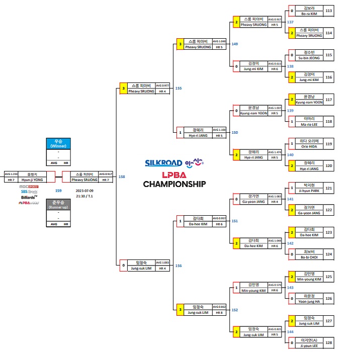 | 실크로드 안산 LPBA 챔피언십 4강 대진표 - 용현지 강지은, 스롱 피아비 임정숙 (0) | 2023.07.07 |