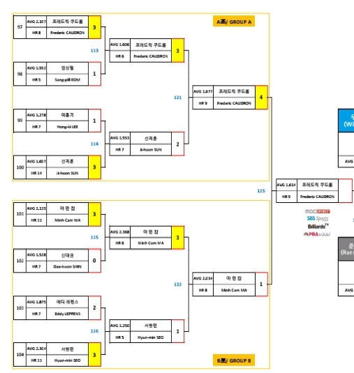 쿠드롱은 16강부터 4강 준결승까지 엄상필, 선지훈, 마민캄을 이기고 결승에 올랐습니다. 4강 준결승전 경기의 게임 에버리지는1.614를 기록하였습니다.