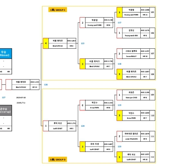 | 실크로드 안산 PBA 챔피언십 4강 대진표 - 8강 경기결과 (0) | 2023.07.09 |