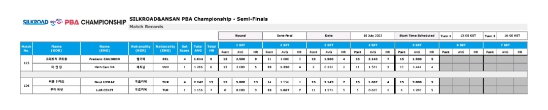 1. 실크로드 안산 PBA 챔피언십 4강 경기결과