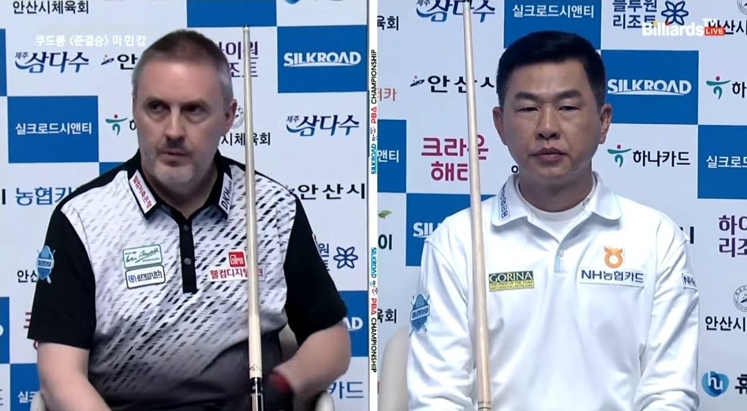 쿠드롱은 벨기에 국적의 세계 3쿠션 최강자로 지난 시즌까지 일곱차례나 우승을 차지한 선수입니다. 마민캄은 PBA에서 베트남 국적의 선수 가운데 우승을 한 최초의 선수입니다.