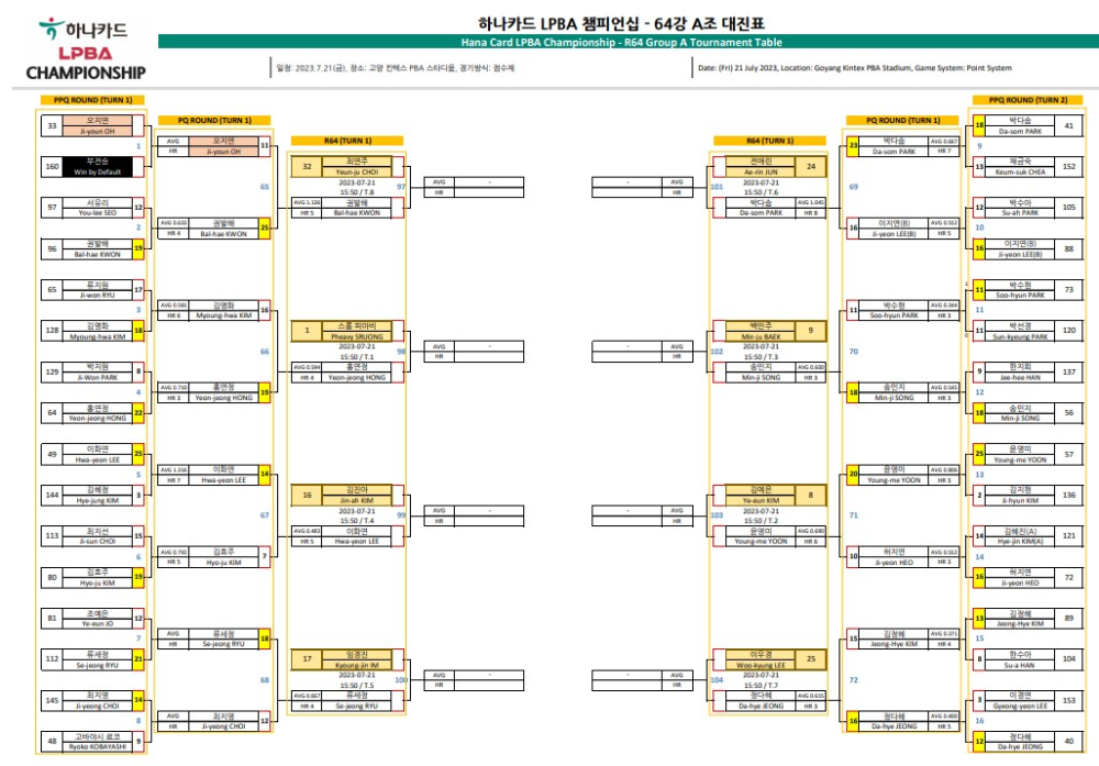 | 하나카드LPBA 챔피언십 32강 대진표 64강 경기결과 (0) | 2023.07.22 |