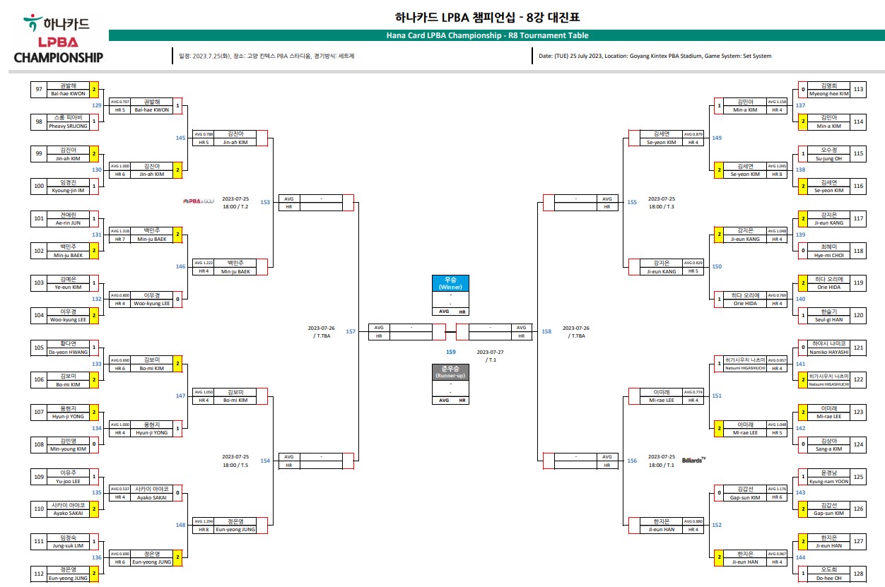 | 하나카드 LPBA 챔피언십 4강 대진표 (0) | 2023.07.25 |