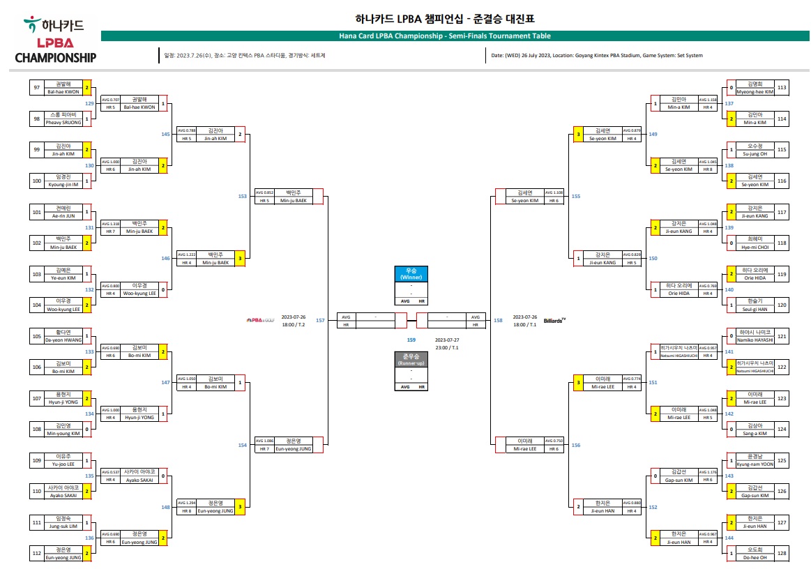 | 백민주 김세연 - 하나카드 LPBA 챔피언십 결승 대진표 (0) | 2023.07.26 |