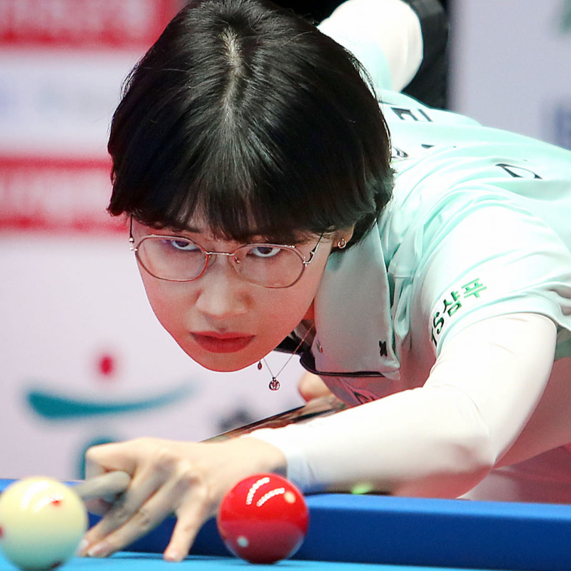 반면 정은영 당구선수는 32강에서 임정숙 챔피언을 2대 1로 꺾고, 16강에서는 사카이 아야코 선수를 2대 0으로 꺾으며 8강 대진표에 이름을 올렸습니다. 8강에서 용현지 선수를 이기고 올라온 김보미 선수를 3대 1로 이기고 준결승에 진출하였습니다.