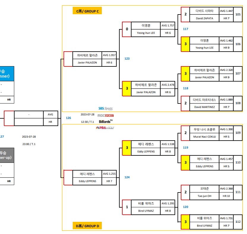 하나카드 PBA챔피언십 4강 대진표 C, D조