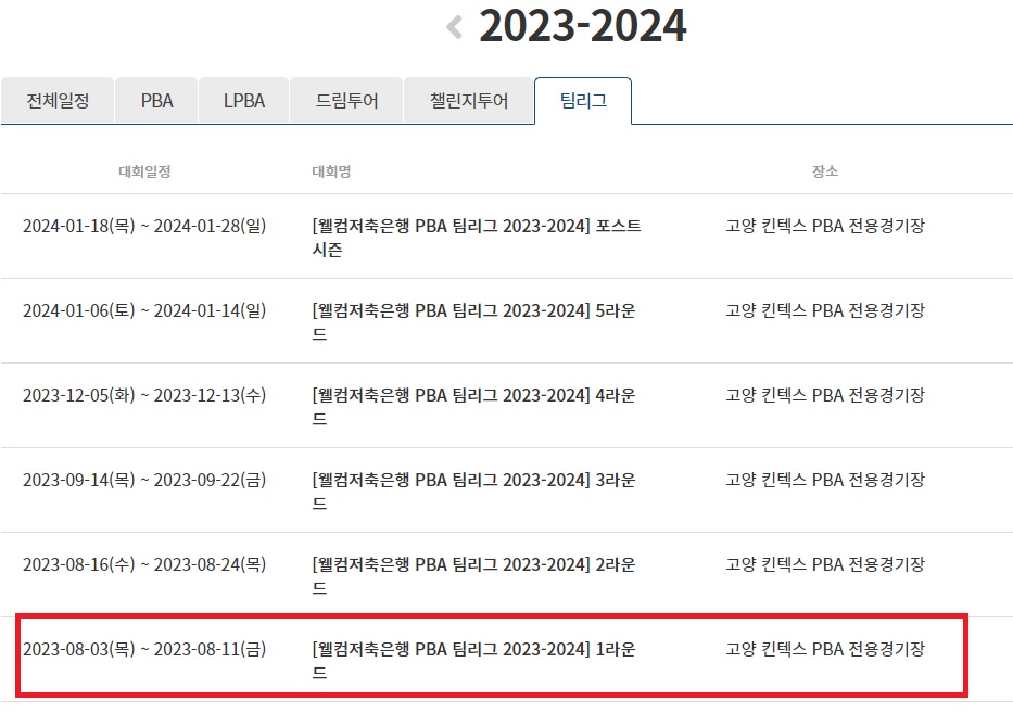 프로당구 2023-24시즌 PBA 팀리그 대회 일정
