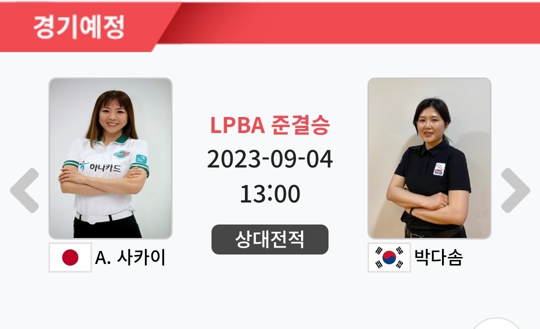 에스와이 LPBA 챔피언십 4강 대진표(1) : 사카이 아야코 - 박다솜
