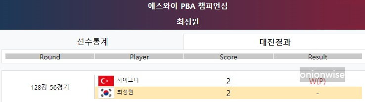 최성원 128강 경기결과 - 하나카드 PBA 챔피언십
