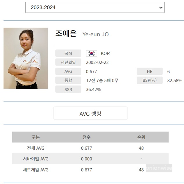 3. 프로당구 2023-24시즌 조예은 당구선수 LPBA 경기지표