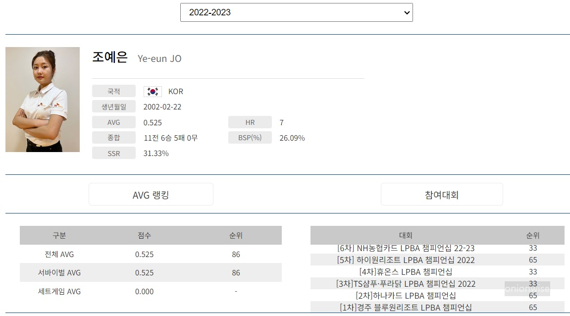 2. 프로당구 2022-23시즌 조예은 당구선수 LPBA 경기지표