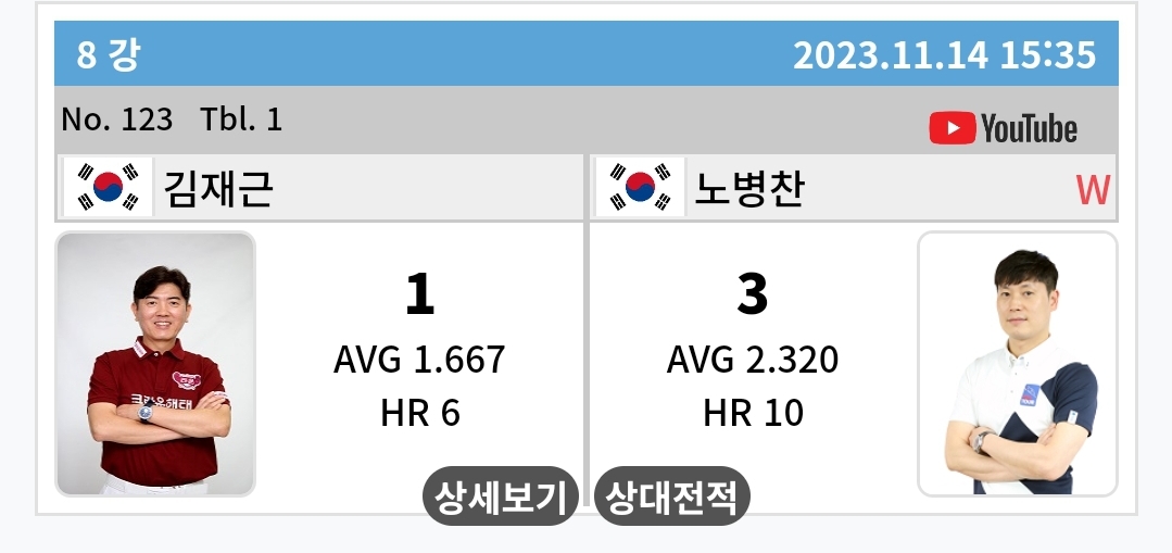 1) 김재근 VS 노병찬 8강 경기결과