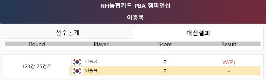 이충복 PBA 128강 탈락 2패