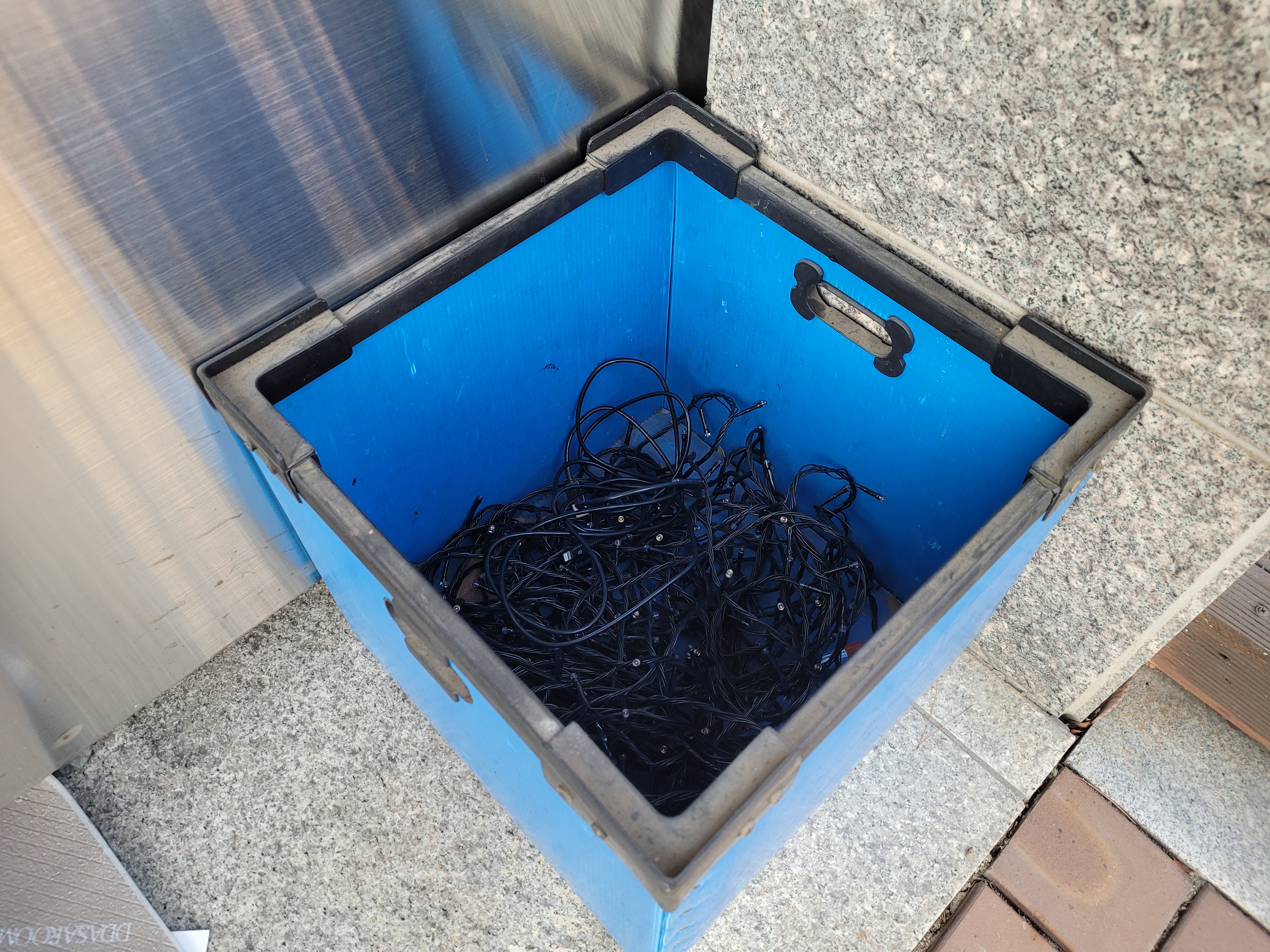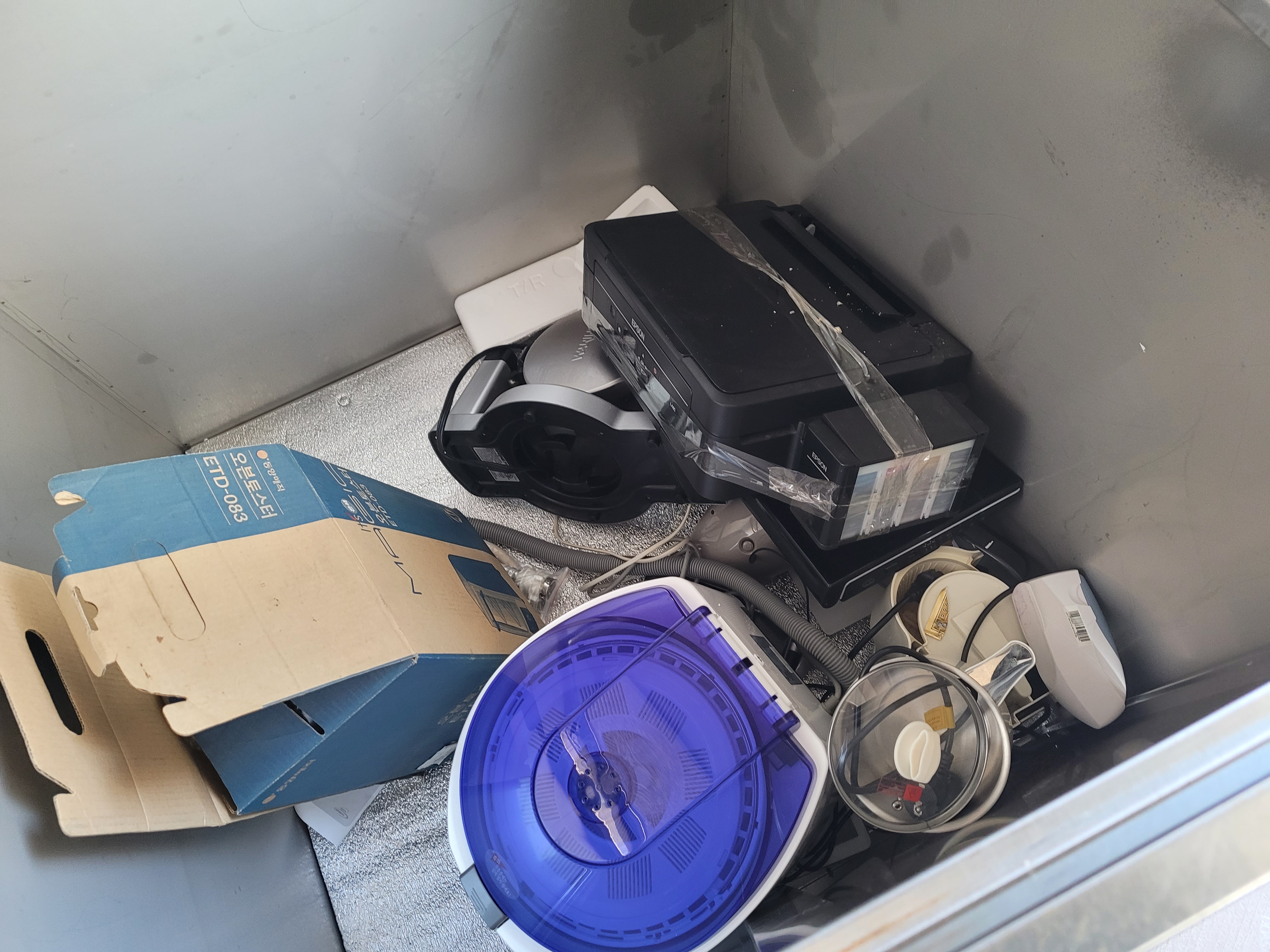 현재 제가 거주하는 곳의 수거함에 버려진(수거된) 중소폐가전 제품들입니다. 가만히 보니 중소형 폐가전 전용 수거함 옆에는 마련된 소형 플라스틱 박스에는 전기코드류들이 수거되어 있습니다. 오래되어 안전이 걱정되는 전기콘센트를 여기에 버릴 수 있을 것 같습니다.