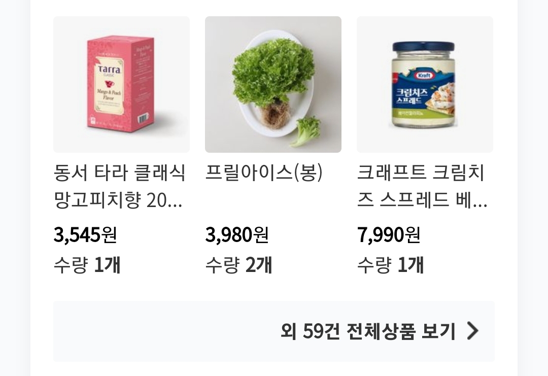 홈플러스 망고피치향, 프릴 아이스, 크림치즈 각각 1개씩 구매했습니다. 프릴 아이스라는 채소도 있군요. 2개 3,980원입니다.
