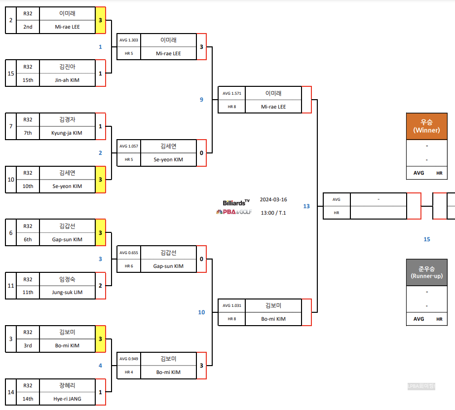 2024.03.13 - LPBA 월드챔피언십 32강 3일차 경기결과