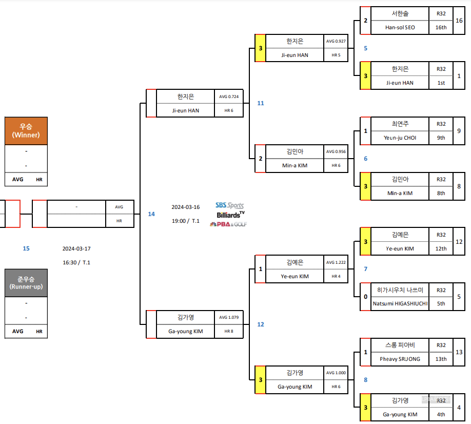 2024.03.14 - LPBA 월드챔피언십 2024 16강 대진표 32강 경기결과