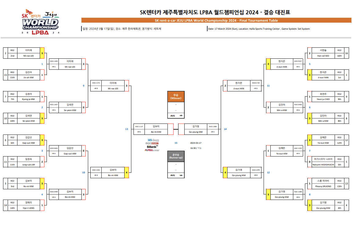 LPBA 월드챔피언십 2024 결승 대진표 - 김보미 VS 김가영
