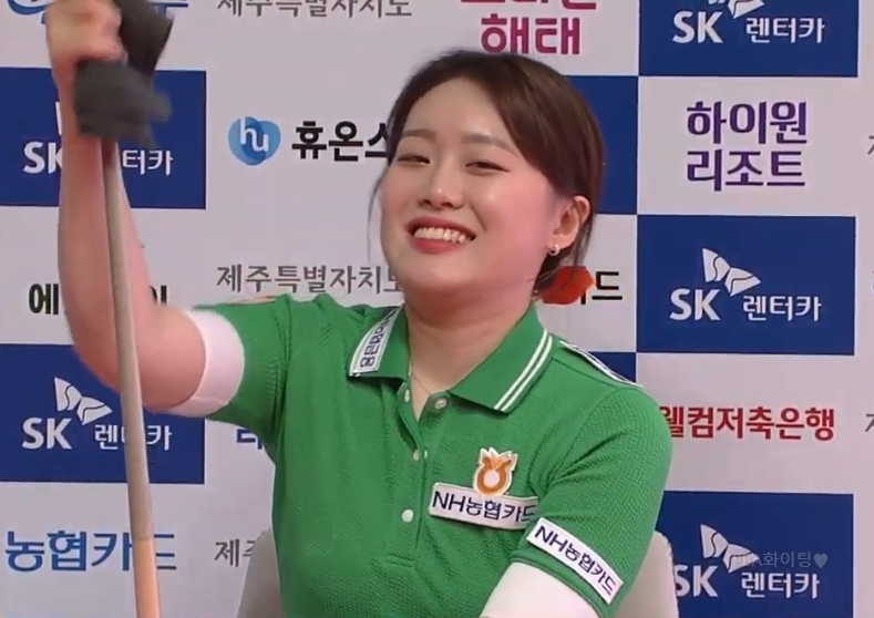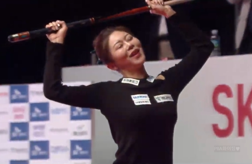 개인큐를 번쩍 들고 기뻐하는 당구선수 김가영!