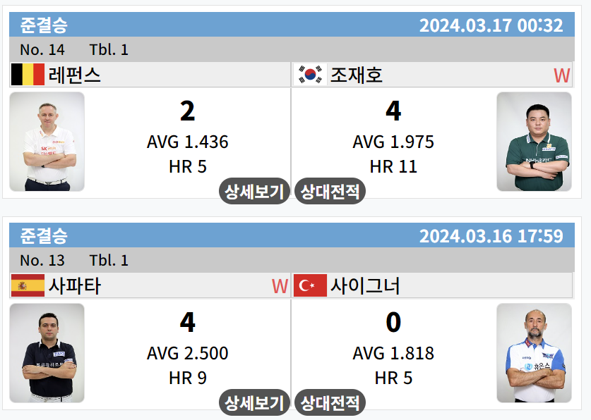 | LPBA 월드챔피언십 2024 결승 대진표 - 4강 경기결과 (0) | 2024.03.16 |