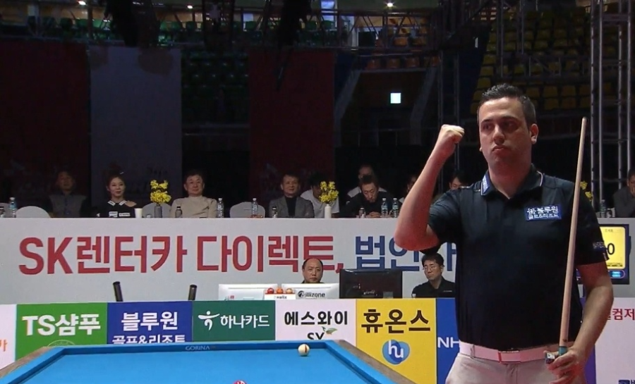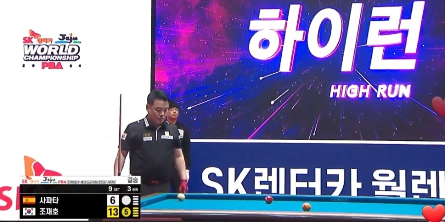 그리고 조재호는 사파타가 6점에 머무르는 동안 마지막 뱅크샷을 성공시키면서 15:6으로 9세트를 이겼습니다.