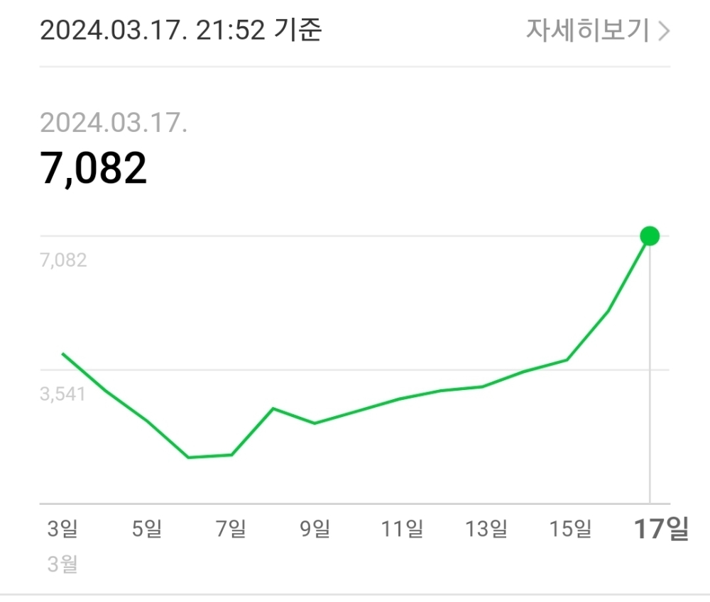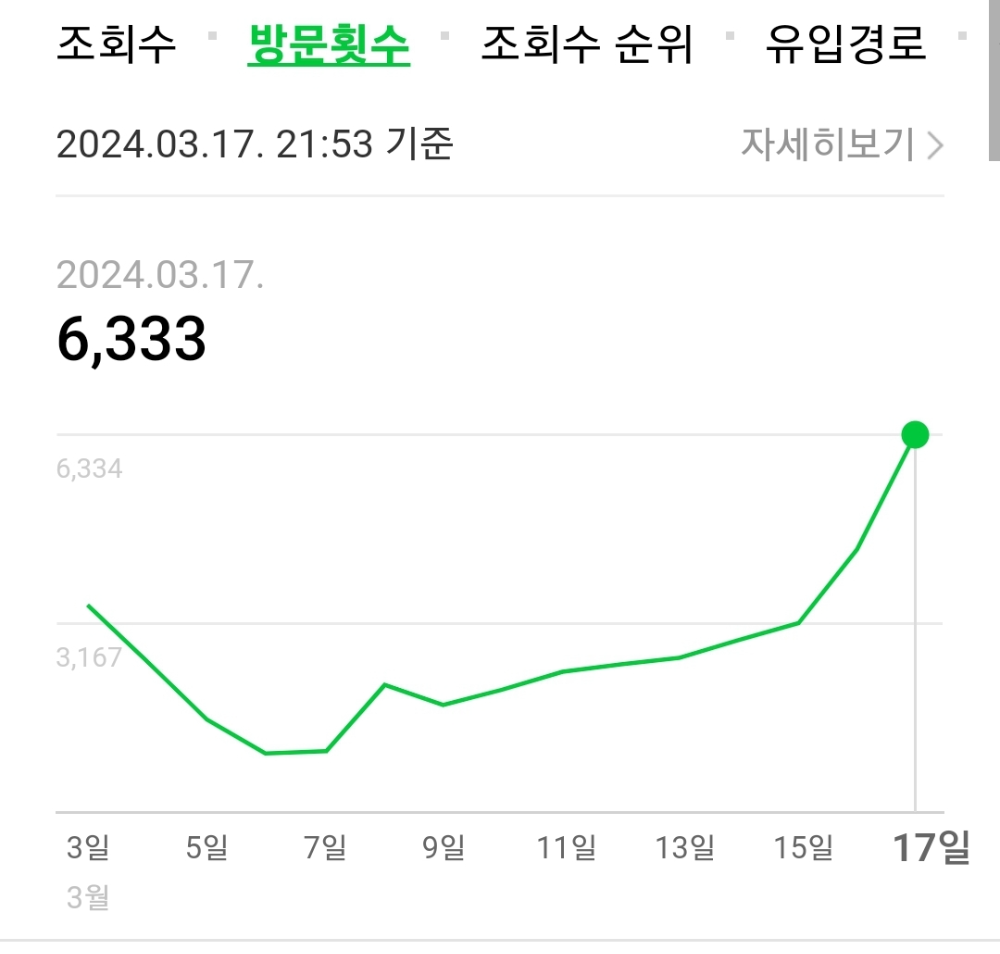 3월 17일 저녁 10시가 안 된 시각에 조회수는 7천을 넘었고, 방문 횟수는 6천을 남겼습니다.