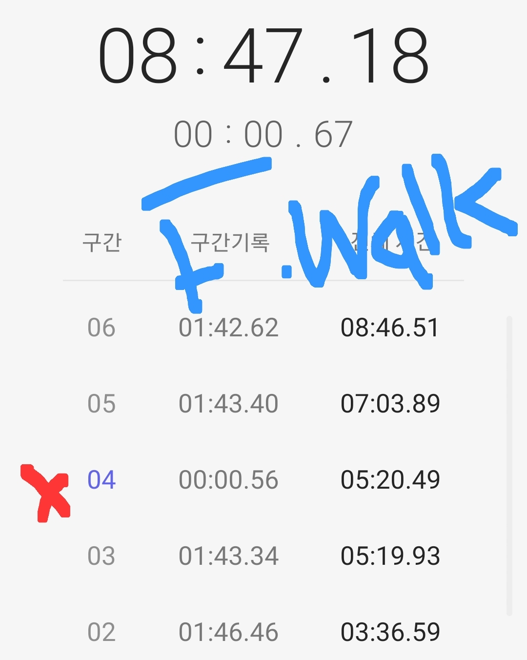4. 4월 24일 오후, 빠르게걷기 5세트, 1분 50초 ~ 42초