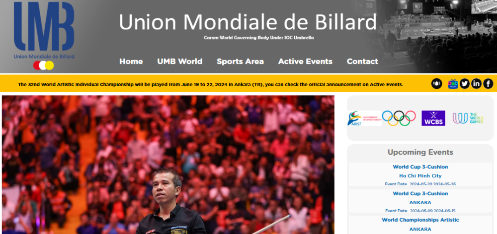 UMB는 1926년 프랑스에서 설립되었으며, 현재 55개 국가가 회원국으로 가입되어 있습니다. UMB의 역할은 크게 네 가지로 나눌 수 있습니다. 첫 번째는 월드컵 3쿠션, 월드컵 챔피언십, 세계 대륙별 3쿠션 선수권 대회 등 다양한 세계 3쿠션 당구 대회를 개최합니다.