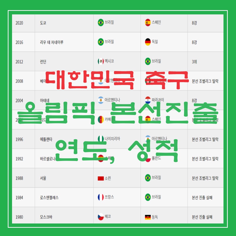 ■ 한국 남자 축구대표팀 올림픽 본선진출 및 대회별 성적