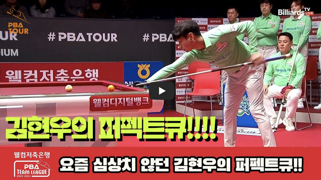 부득히 영상연결을 삭제하는 점 양해바랍니다. 당구선수 김현우는 프로당구 2023-24시즌 PBA팀리그에서 4라운드 1세트에 퍼펙트큐를 기록하며 존재감을 드러내고, 팀의 승리에 기여를 하였습니다.